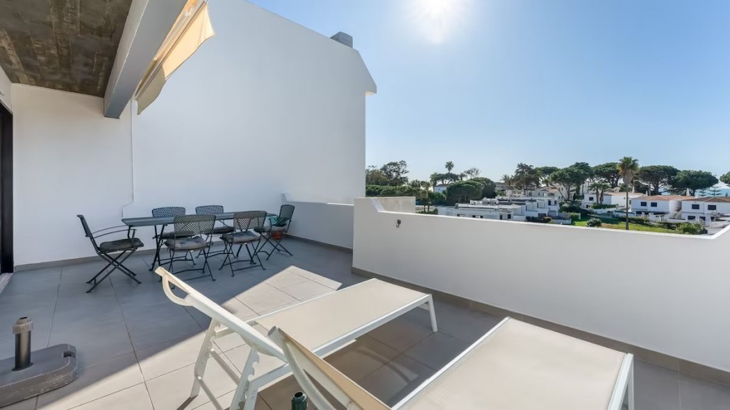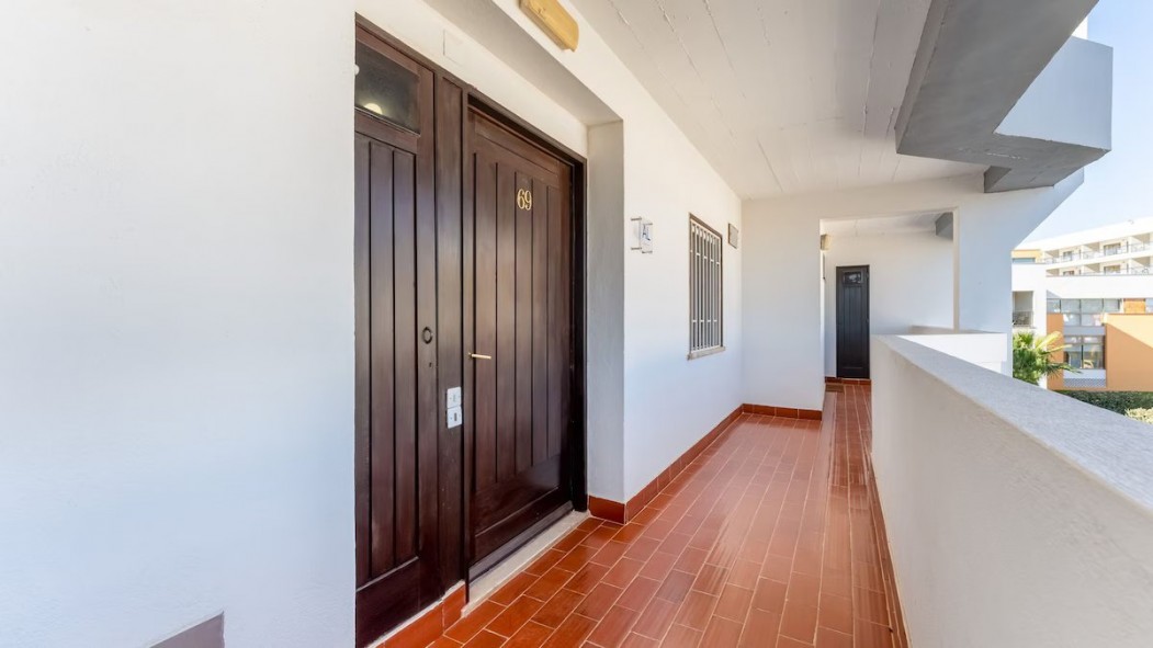 Step outside onto the private terrace, a perfect spot to enjoy a morning coffee or unwind in the evening. Guests also have access to a shared swimming pool within the condominium, offering a refreshing retreat on warm Algarve days.
