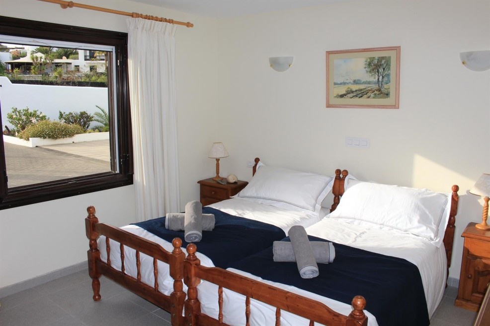 Bedroom 3: Twin beds, TV, air conditioning, fitted wardrobe, shared bathroom (shower/bath).