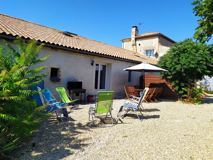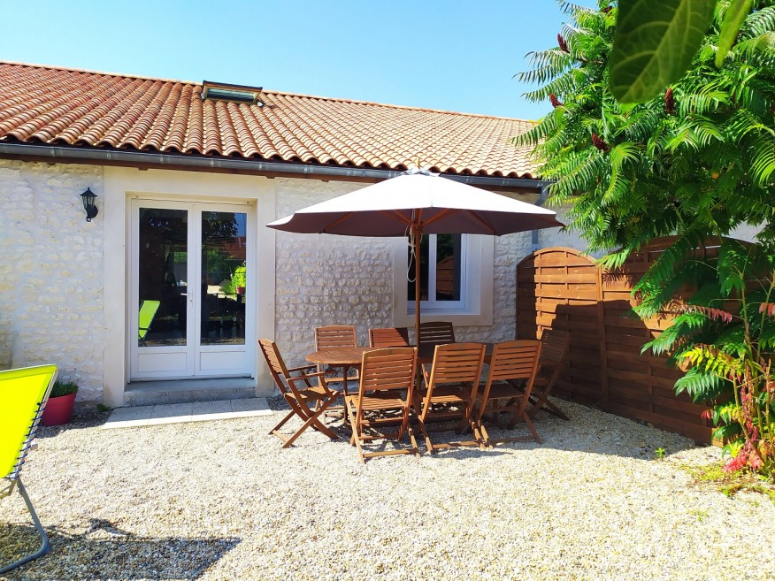 This charming three-bedroom, two-bathroom gîte is set over two floors and comfortably accommodates up to eight guests. Located within a beautifully renovated barn, it combines the character of a traditional Charentais country cottage with surprisingly generous living space. To the rear, you’ll enjoy a private garden and independent parking, making it ideal for families or groups.