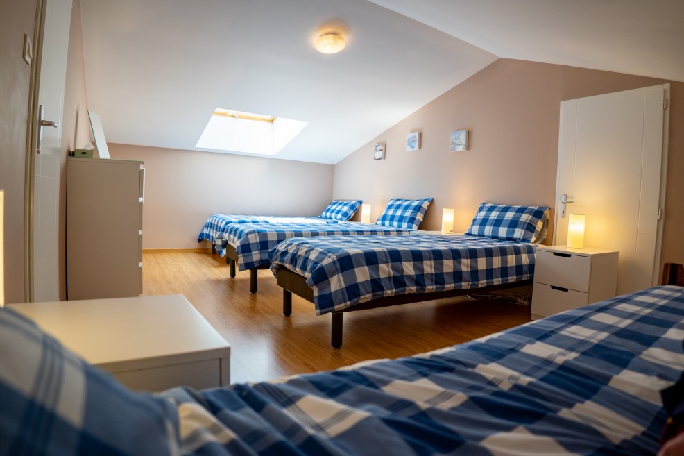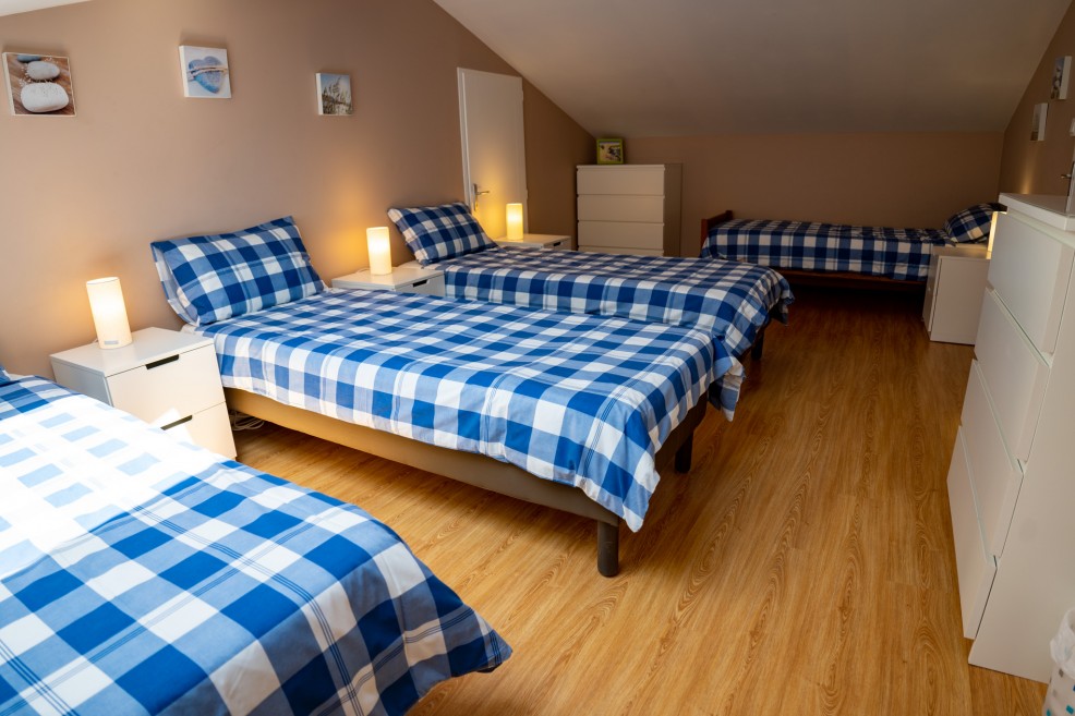 Bedroom 2 (19m²) is a versatile, generously sized room that can be arranged with either a King-size bed or up to four single beds (80x190 or 80x200) to suit your group’s needs. There is plenty of storage within the room, as well as additional space on the adjacent landing.