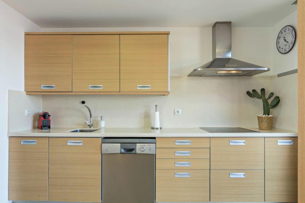 A fully equipped kitchen with dishwasher