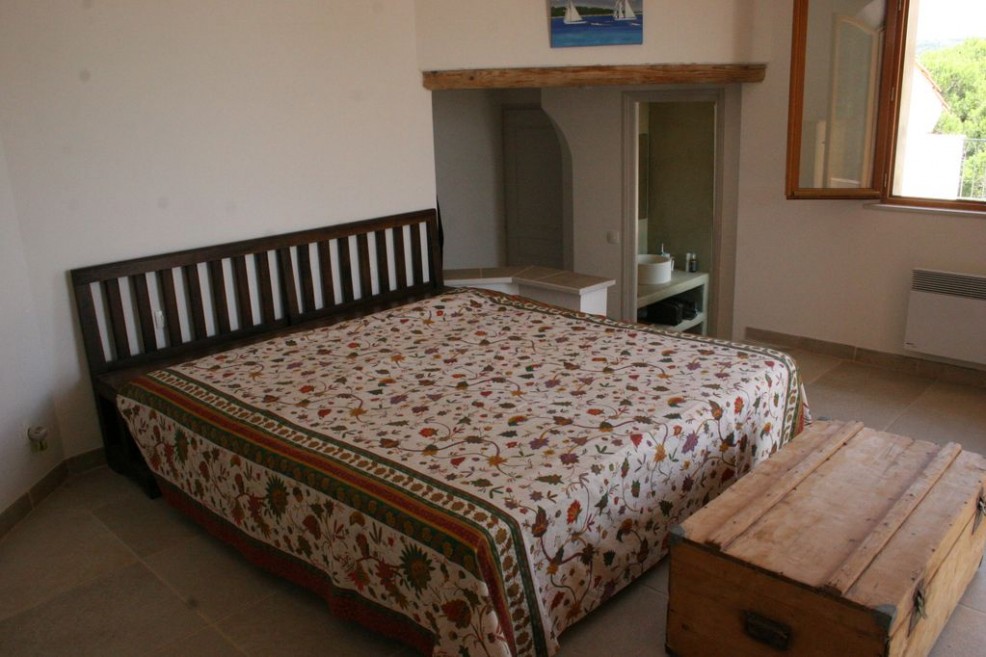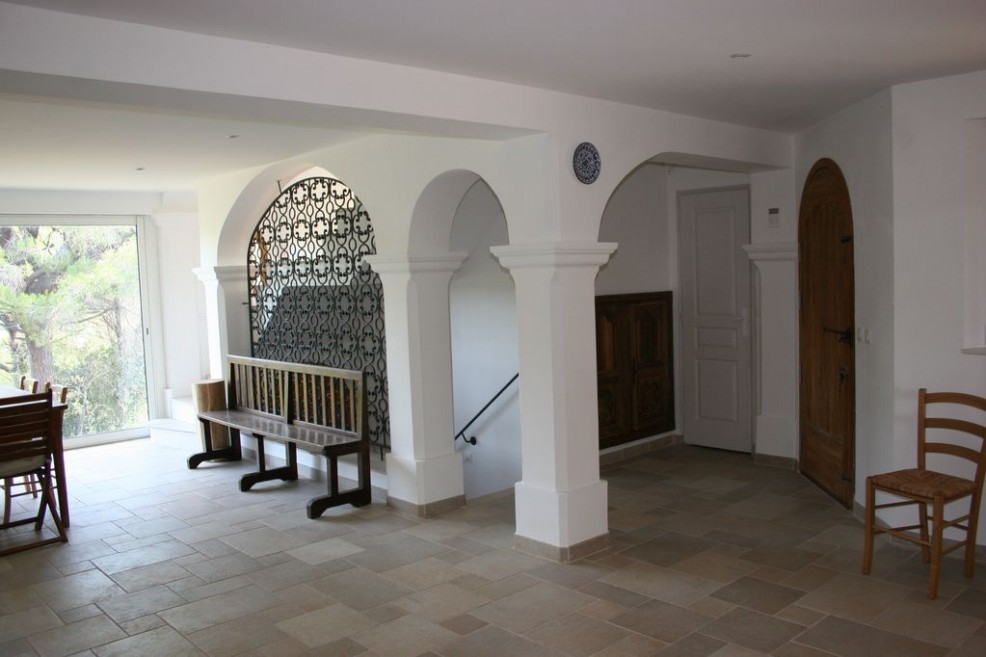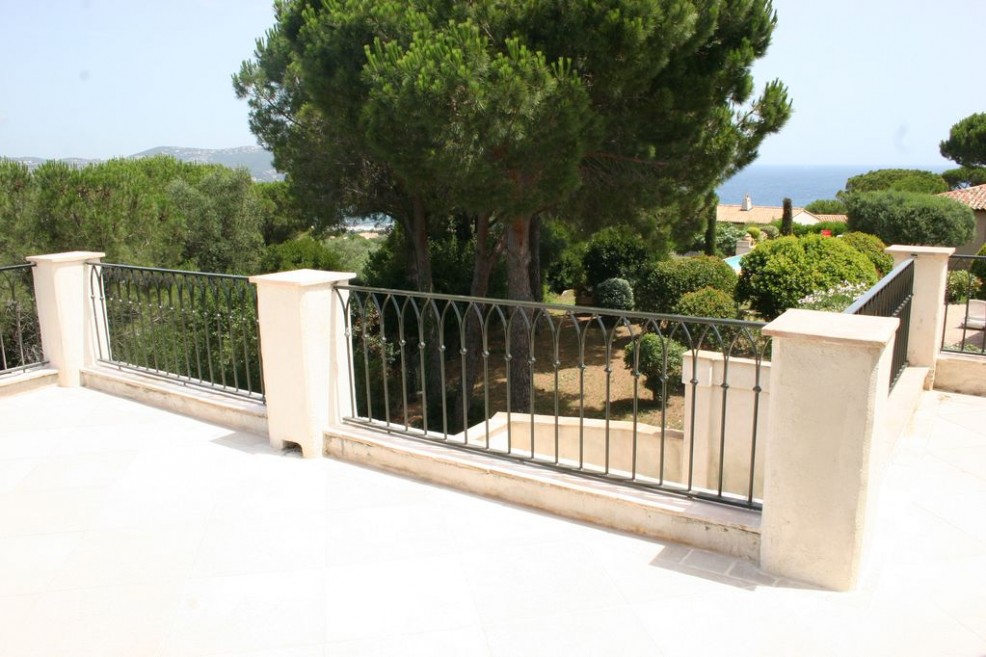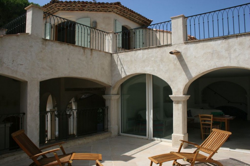 spacious villa with sea view Issambres side, Saint Tropez and pine forests, on 3 levels with 5 bedrooms, 4 bathrooms, 4 independent toilets, 1 guest toilet, large living room 1 lounge and terrace sea view, large terraces sea and pine forest, barbecue gas, laundry with washing machine, kitchen, induction hob, dishwasher, 2 car garage. Quiet area 500 m walk from the beach of Nartelle. Secure house with gateway to the property automated and sliding, alarm, central aspiration, water softener etc ....