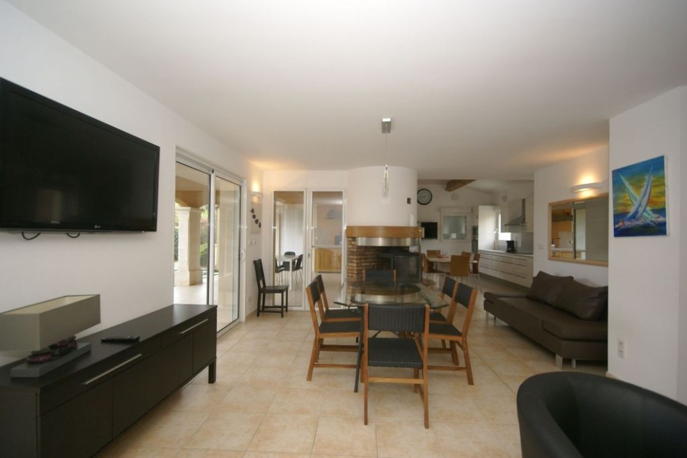 Everything is top in this villa! It has beautiful spacious rooms with air conditioning. Everything is well maintained and in perfect condition. Behind the villa you will find a garden with a well maintained lawn, a covered terrace and a barbecue. At the front of the villa is the large fenced private pool, with a pool house and breathtaking views of the green surroundings. There is plenty of space for children so they can play and romp at will! In 10 minutes, you are in the charming seaside resort of Sainte-Maxime and on the beautiful and wide sandy beaches of La Nartelle. Sainte-Maxime is a pretty lively seaside resort, with many shops, cafes, and restaurants. For children, an excursion with the aquascope (an underwater boat) will be an unforgettable experience. You can also spend a day at the aquatic theme park and tree climbing park Sainte-Maxime. The list of excursions to do in the surroundings is very long! Do not miss the Saint-Tropez market on Tuesdays. There are a lot of people, which gives it a nice dimension, and there is a lot to see. A beautiful crossing by ferry takes you in 20 minutes to Saint-Tropez (in summer, you will prefer to avoid the animated coastal road towards Saint-Tropez)! There is a second house on the ground. This house is uninhabited during the rental. excursions to do in the surroundings is very long! Do not miss the Saint-Tropez market on Tuesdays. There are a lot of people, which gives it a nice dimension, and there is a lot to see. A beautiful crossing by ferry takes you in 20 minutes to Saint-Tropez (in summer, you will prefer to avoid the animated coastal road towards Saint-Tropez)! There is a second house on the ground. This house is uninhabited during the rental. excursions to do in the surroundings is very long! Do not miss the Saint-Tropez market on Tuesdays. There are a lot of people, which gives it a nice dimension, and there is a lot to see. A beautiful crossing by ferry takes you in 20 minutes to Saint-Tropez (in summer, you will prefer to avoid the animated coastal road towards Saint-Tropez)! There is a second house on the ground. This house is uninhabited during the rental.