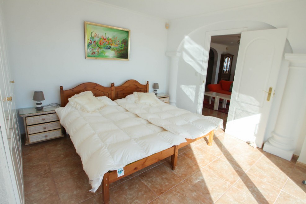 - An interior staircase descends to the ground floor where you will enjoy a large living room with kitchen open, two double bedrooms and a bathroom with shower. At the same level you will enjoy the magnificent private pool of 10x5m (depth 1m to 1.60m) with its terraces overlooking the coastline of Moraira in Calpe.