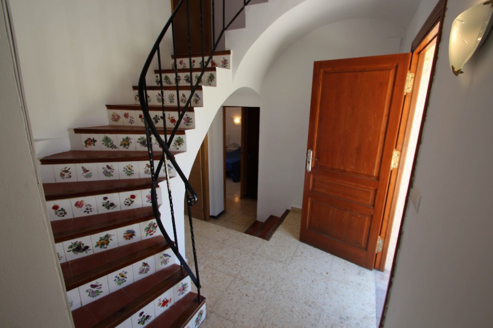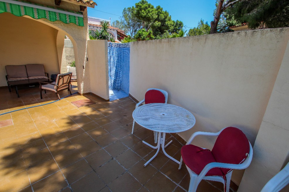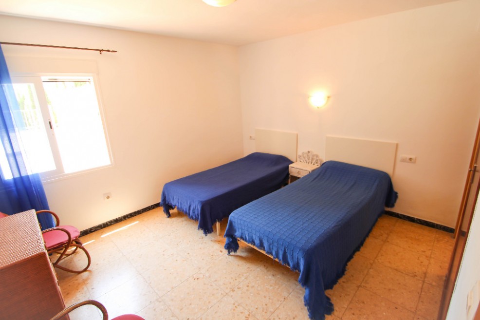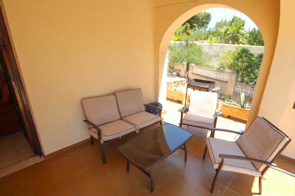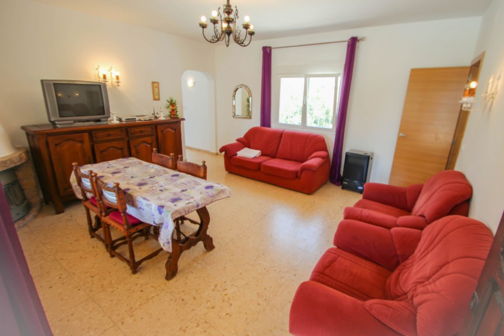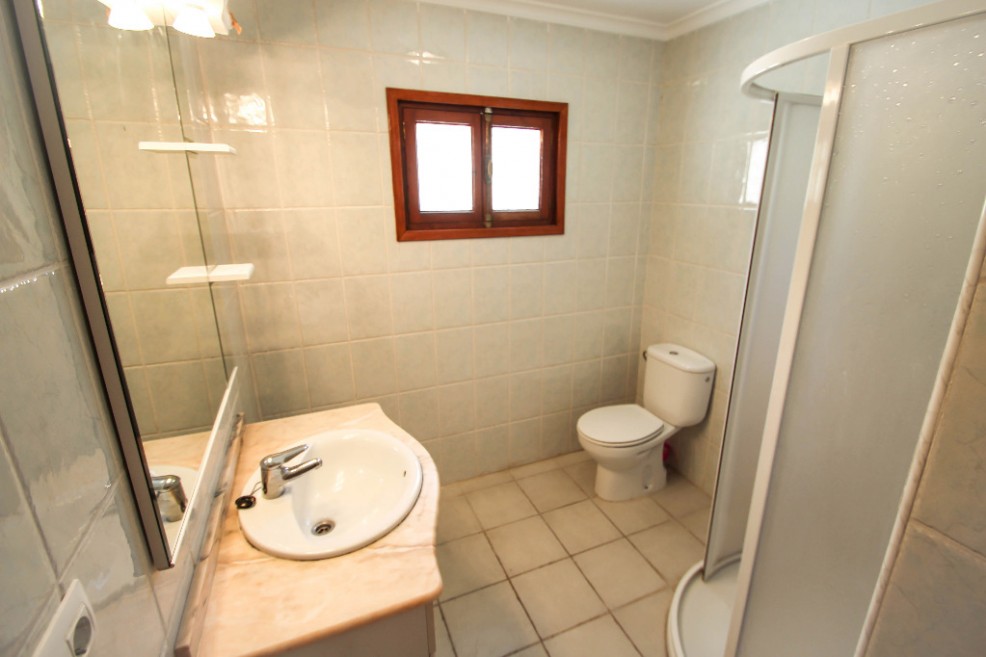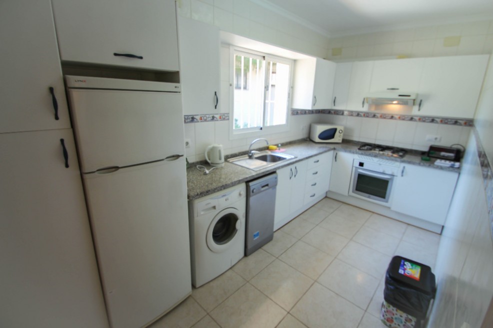 - Entrance on the ground floor through a covered terrace with garden furniture, a living dining room with sat TV, DVD and fireplace. A fully equipped kitchen. Two bedrooms (one air conditioned with double bed and one with twin beds) and two bathrooms (one with bath and the other smaller with shower).