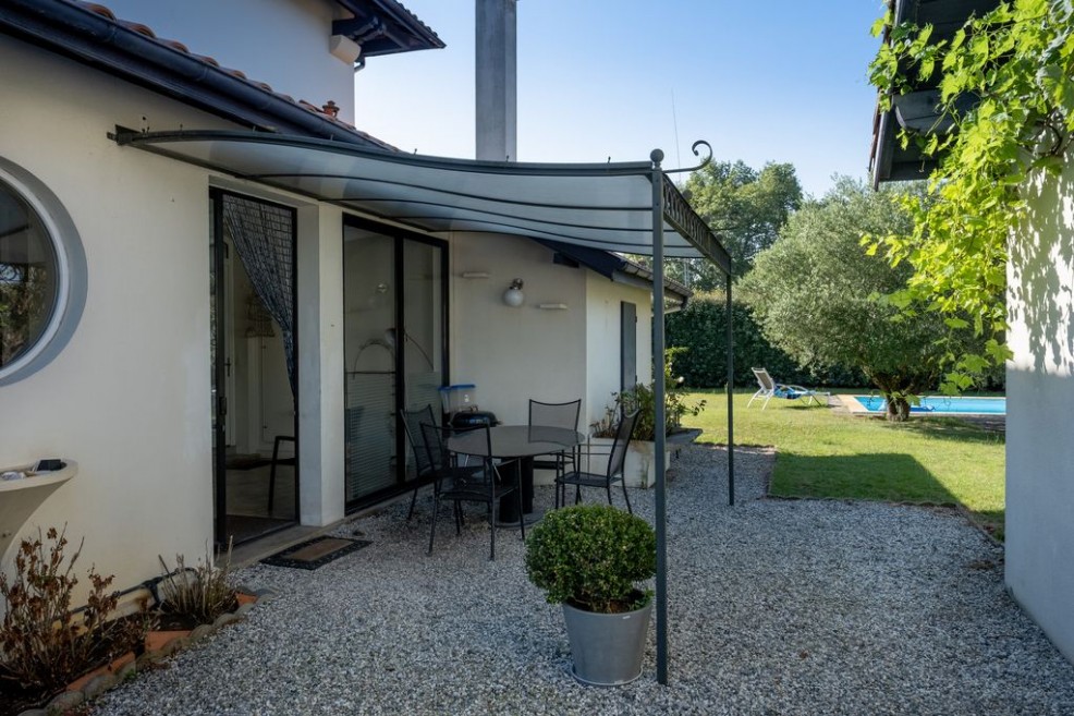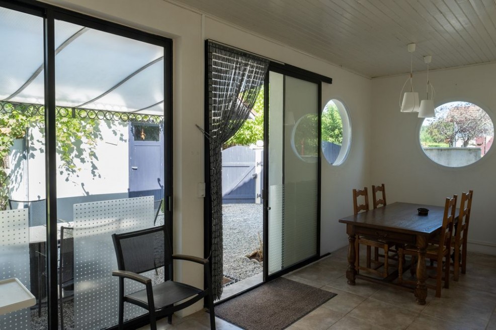 Enclosed veranda with expandable dining table and chairs