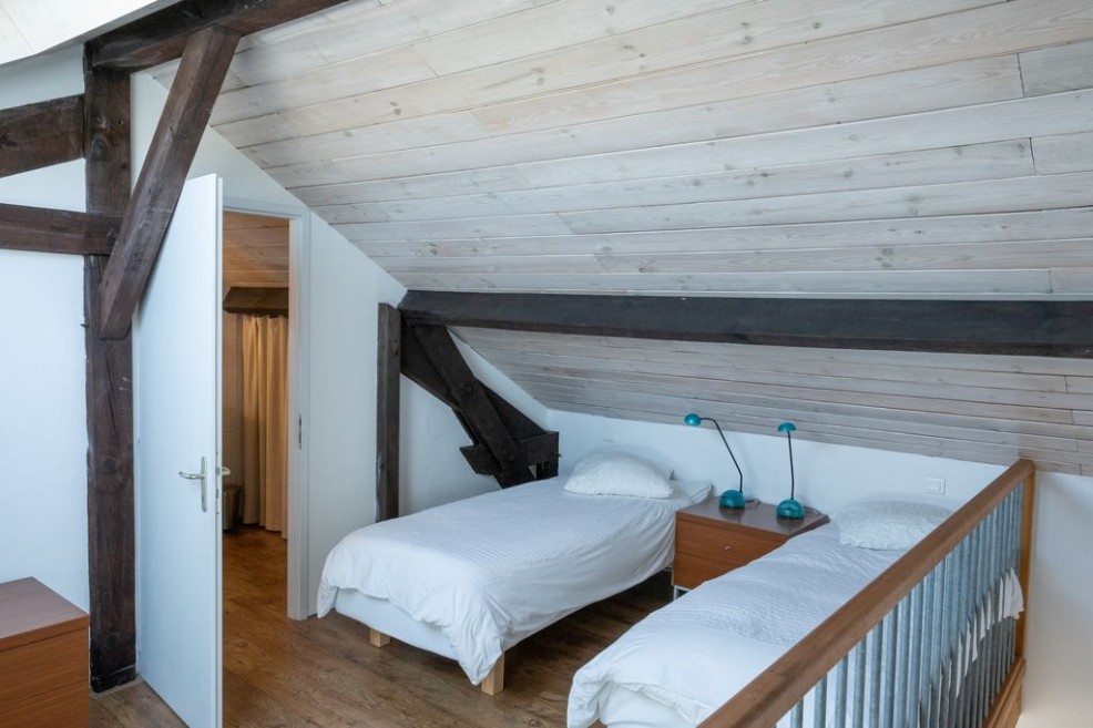 1 bedroom with two low-height twin beds, ideal for children or guests with mobility needs