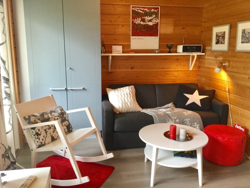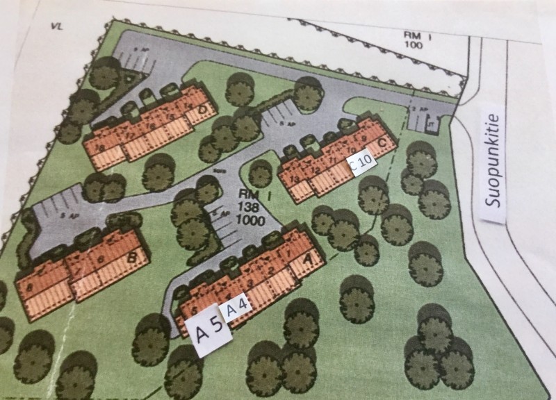 Onnenranta is located at Suopunkitie 1 A 4. This apartment is in a terraced house and has a surface area of 43 m². The apartment has a combined kitchen and living area, a bedroom, a sauna, and an outer storage space. The bedroom has two separate divan beds. The sofa bed in the kitchen can used as a bed (width: 140 cm).