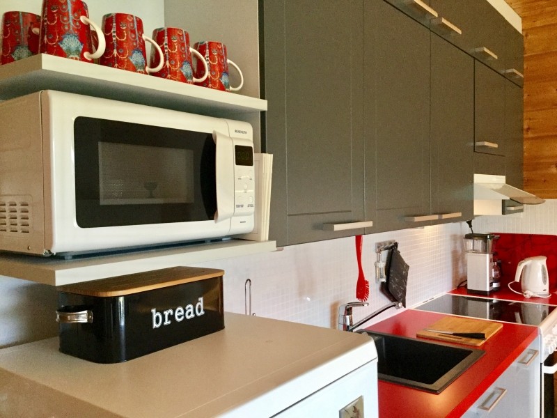 The kitchen is fully equipped and has everything from a dishwasher to a garlic press. Firewood is included in the price.