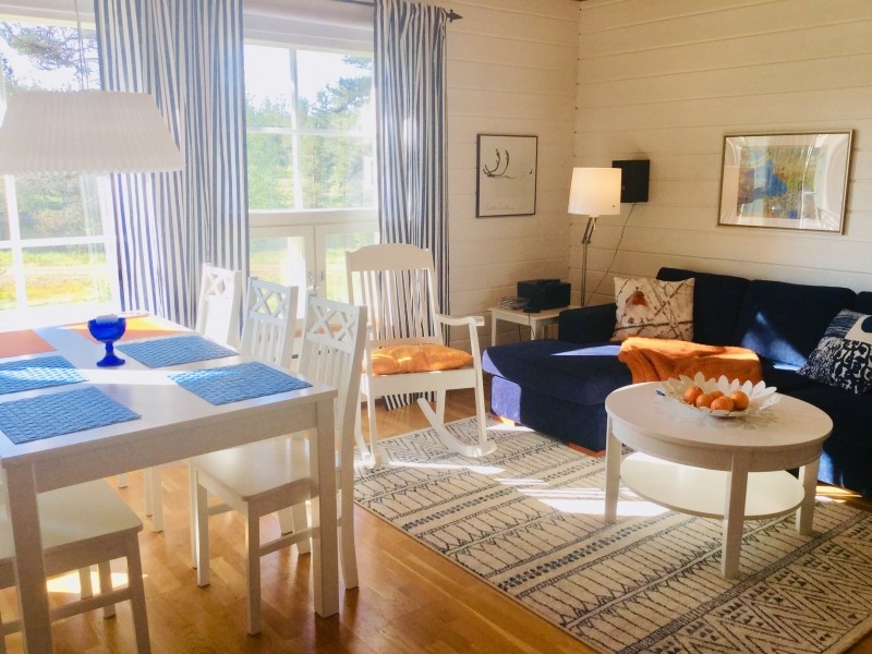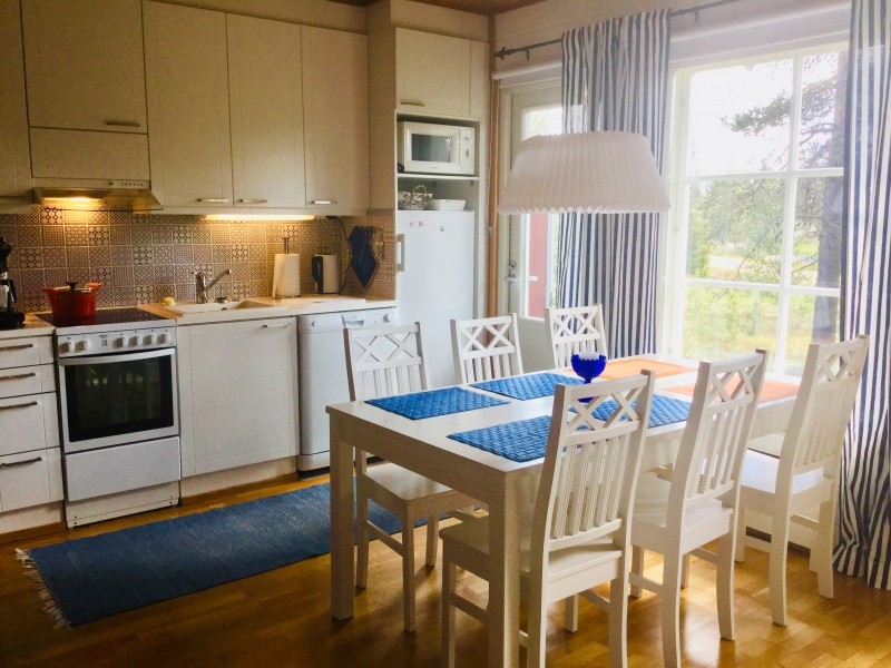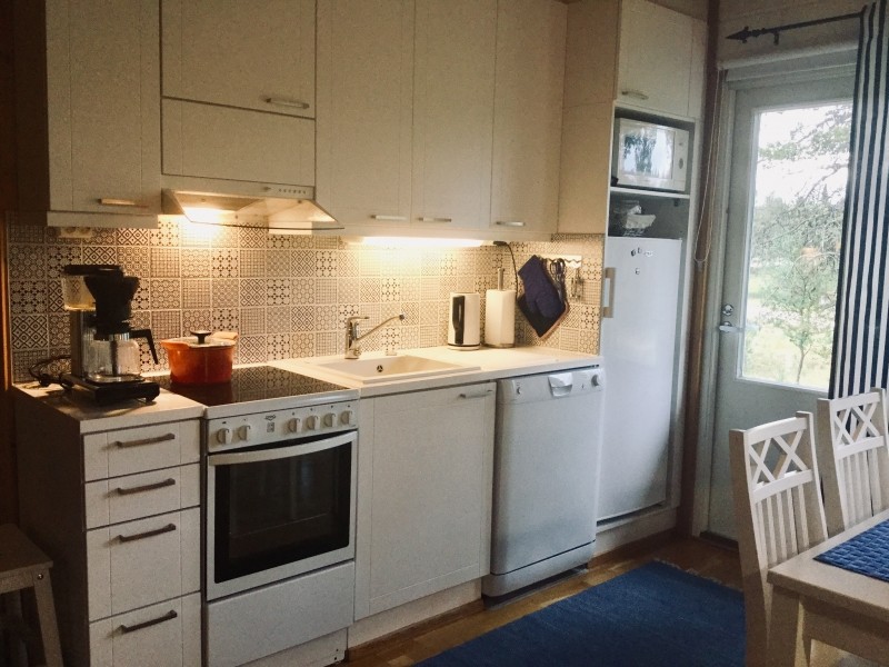 The kitchen is fully-equipped with lots of dishes and every household appliance you can think of. The bathroom has a washer and dryer. The apartment has a sauna, a fireplace, and a smart TV. Firewood is included in the price. The apartment’s Wi-Fi connection works well.