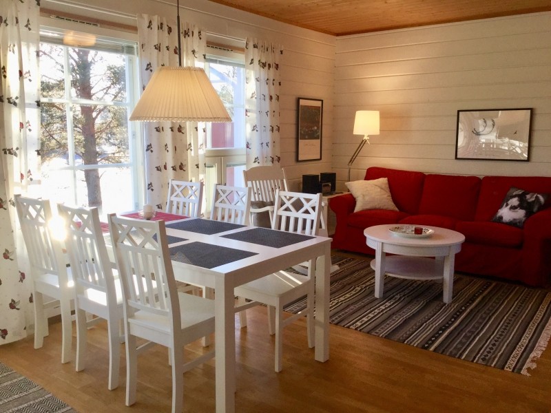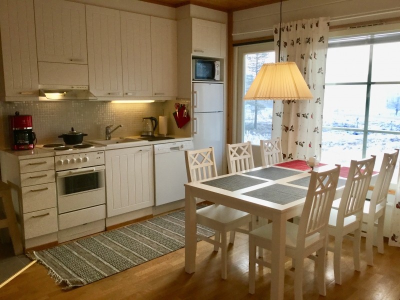 The house is located by the Kelolampi lake. The environment is peaceful and quiet. The residents can use a well-equipped and heated ski maintenance area in the courtyard. The parking spot has a socket so you can plug in your car’s block heater. There are sleds and a kick sled in the outer storage space.