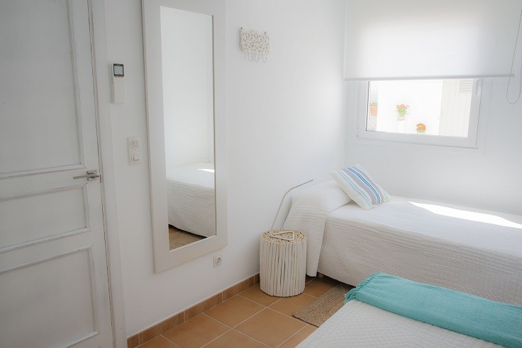 Access to the apartment is by electronic lock with combination, the dining room has a table for four people, the living room has a sofa and armchair, auxiliary furniture, satellite and digital TV and fan. AACC and Wifi. The master bedroom has a 180x200 double bed, 2 bedside tables, a large closet, bench, reading lights and a large window with stained glass window and shutter that gives light to the room. AACC and Wifi. The second bedroom has a baby cot, wardrobe, a desk and reading light with stained glass window and shutter that overlooks the patio / terrace. AACC and Wifi. The bathroomIt has a shower, sink and toilet, electric heating, towel rails, large mirror, cosmetic mirror and hair dryer, bathroom bench and towel set. The kitchen is equipped with a fridge / freezer, dishwasher, oven and electric hob, extractor hood, microwave, nesspresso machine, toaster, juice squeezer, water heater; It has crockery, cutlery and glassware for six people. The patio and / or terrace has a gazebo for 4 people with barbecue and 2 sun loungers, all with views of the church bell tower. Laundry equipped with automatic washing machine, vacuum cleaner and iron with ironing board.