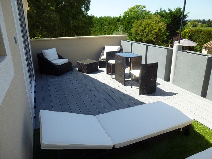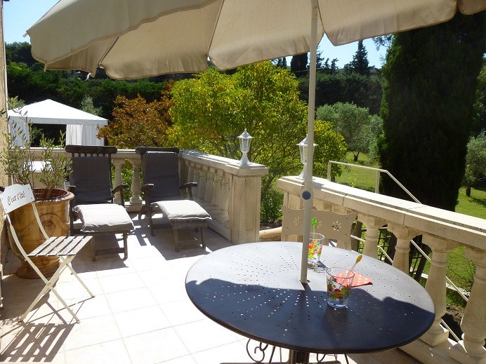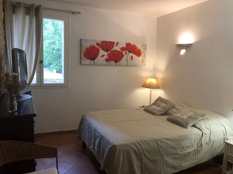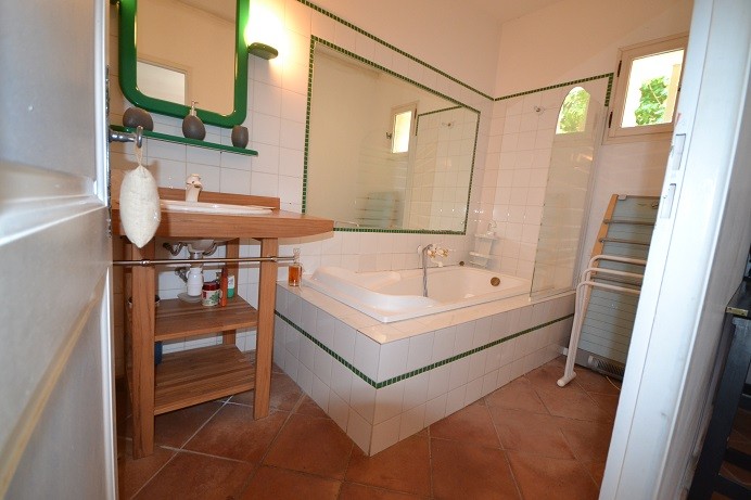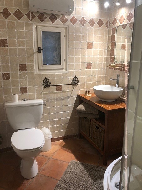 Upstairs, a large office and two more air-conditioned bedrooms with private bathrooms and stunning views of the Alpilles mountains and olive groves.