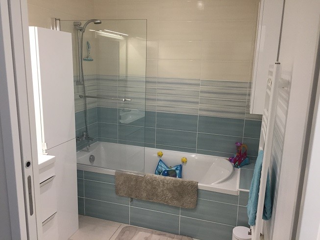 A bathroom with both a tub and shower, plus a separate WC for added convenience.