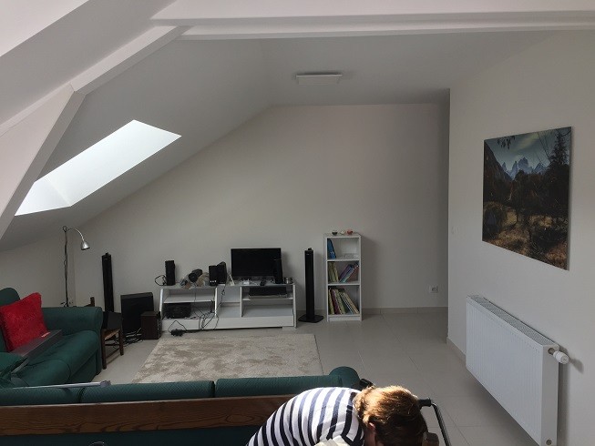 A large, bright living room with panoramic views from East to West, allowing you to enjoy the beauty of the surrounding mountains and landscapes.