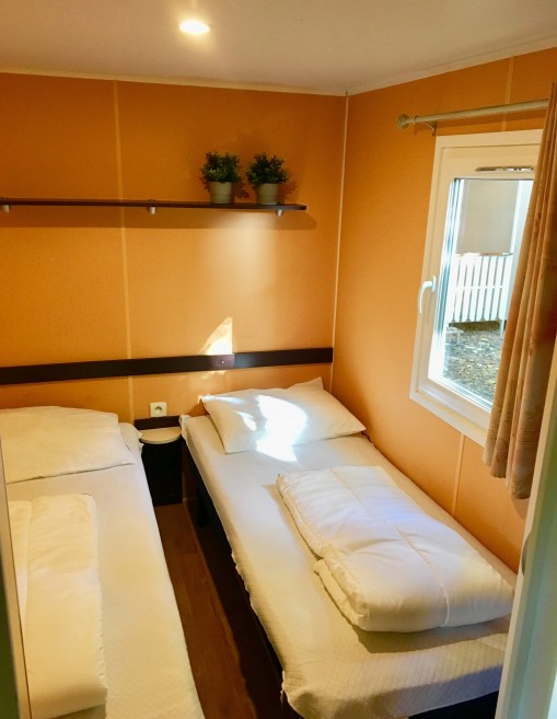 There are also 2 bedrooms in the mobile homes, including 1 bedroom with a double bed and 1 bedroom with a single bed.