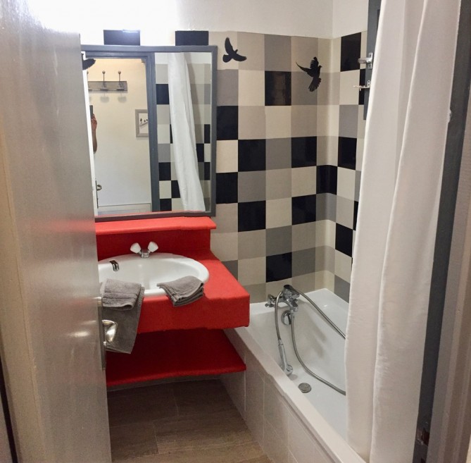Inside, the home features a bright living area with a convertible 160 cm bed, a curtain for privacy, a flat-screen TV, and high-speed WiFi—ideal for families or couples. The American-style kitchen comes fully equipped with modern essentials including a ceramic hob, microwave, refrigerator, and washing machine, plus all necessary crockery for four. A separate bedroom offers two 140 cm mezzanine beds with cozy duvets provided. The bathroom includes a bathtub with shower and sink, while the WC is conveniently separate.