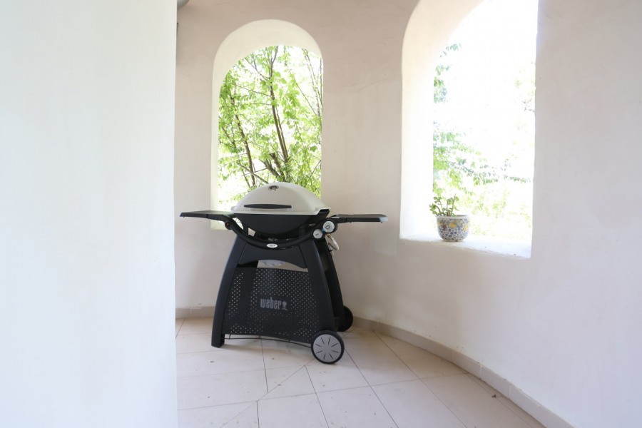 Large private terrace with barbecue, deckchairs, and outdoor dining area