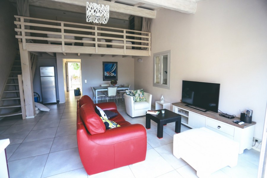 Mezzanine area with 3 single beds (90 cm) – ideal for children or friends