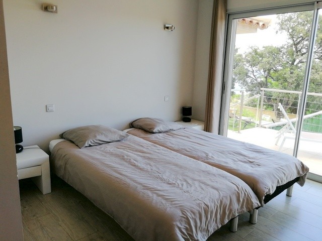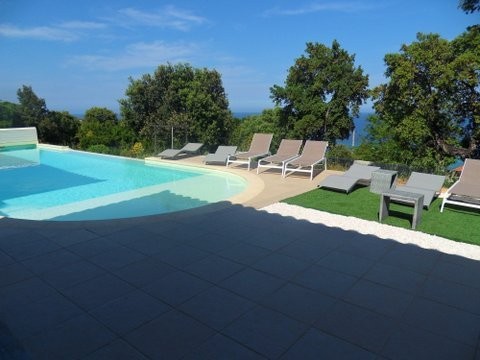 Discover a serene escape in this spacious, modern-style villa perched on a hillside above the charming seaside village of Favone, in South Corsica. Set amidst 2000 m² of untouched Mediterranean vegetation (maquis), the villa offers breathtaking panoramic views of the Bay of Favone and is just a 5-minute walk from the sandy beach.