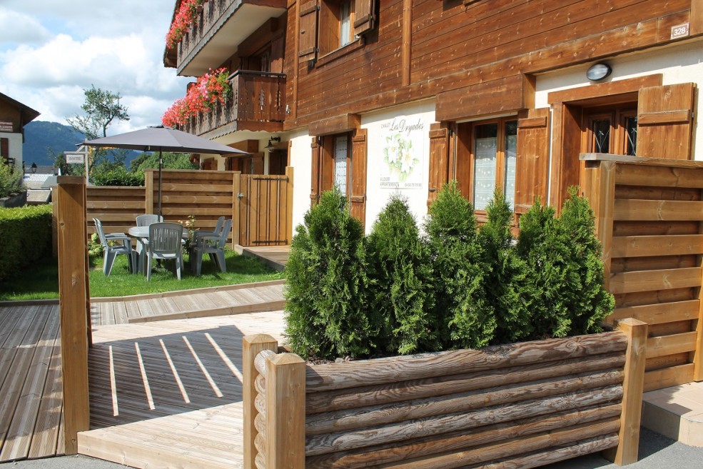 The apartment Anémone is on the ground floor at right on the south west façade of the chalet. Well exposed it is comfortable and pleasant to live with its terrasse and private garden. It is also designed to accommodate peoples with reduced mobility.