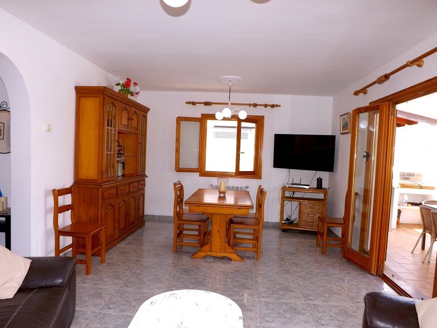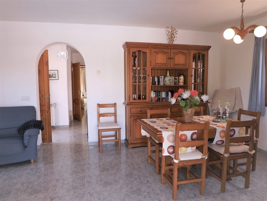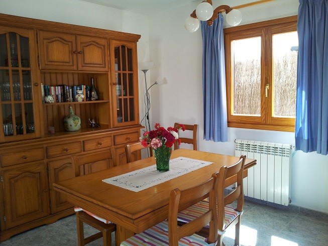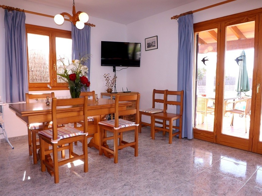 From the dining room there is an exit to the terrace with porch that overlooks the pool and the garden.