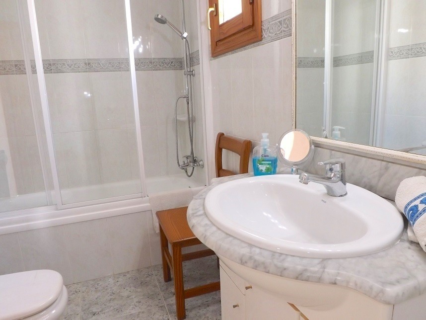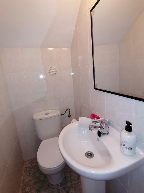 On the ground floor is a living room, kitchen, toilet, bed room with bathroom, there is a staircase to go to the first floor where there are two double bedrooms with wardrobes, there is a bathroom that is shared and a large terrace overlooking the mountains.