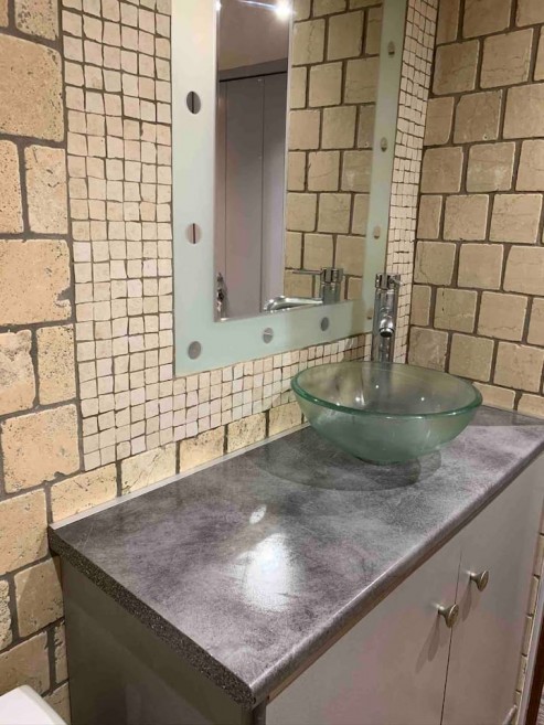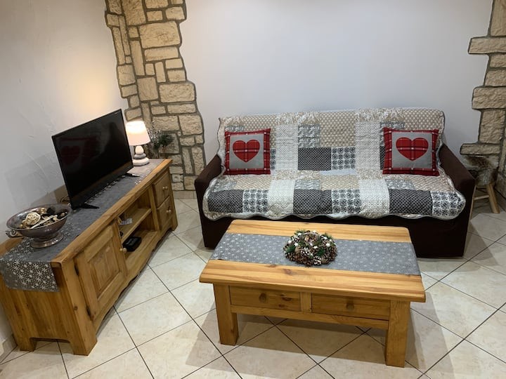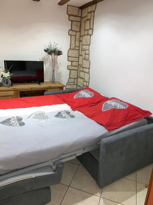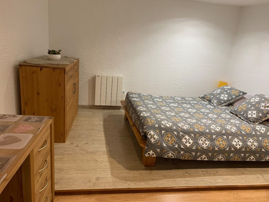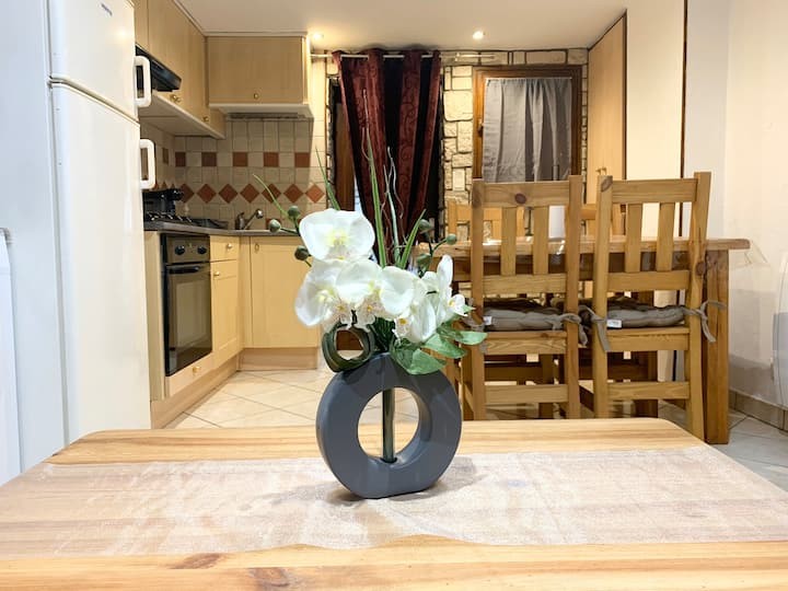 Located in a condominium with a unique entrance through two wooden staircases, this spacious 2-room apartment features a fully equipped kitchen, a comfortable living-dining area, and a cozy bedroom with a private bathroom. A small balcony is available for smokers.