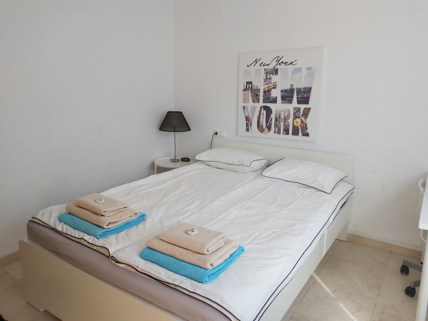When you get into the hallway on the first floor, there is a sofa, that can open up into a bed. (This room is not calculated as a bedroom). From here there is access to the rooftop terrace with lounge furniture and stunning views of the Mediterranean and Fuengirola. Back to the hallway, there is a door that goes into the 5th bedroom. Here you have a sofa bed, aircon and a playstation. This bedroom also has a private bathroom. There is also a smaller toilet on this floor.