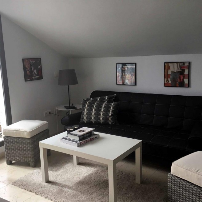 This 3-storey townhouse is furnished in a modern Scandinavian style. Urb. La Roca is only 400 meters from the beach, called Paseo Martimo Del Rey, which is 7 km long.