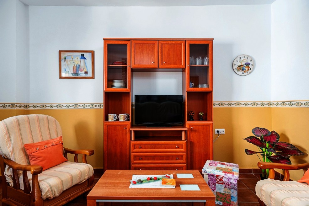 Due to its optimal location, a great selection of shops, restaurants, bars and cafes are in the immediate vicinity while the beautiful, sandy beach Playa de los Bateles is 1.3 km away, which is either a 20-minute walk or a 4-minute drive.