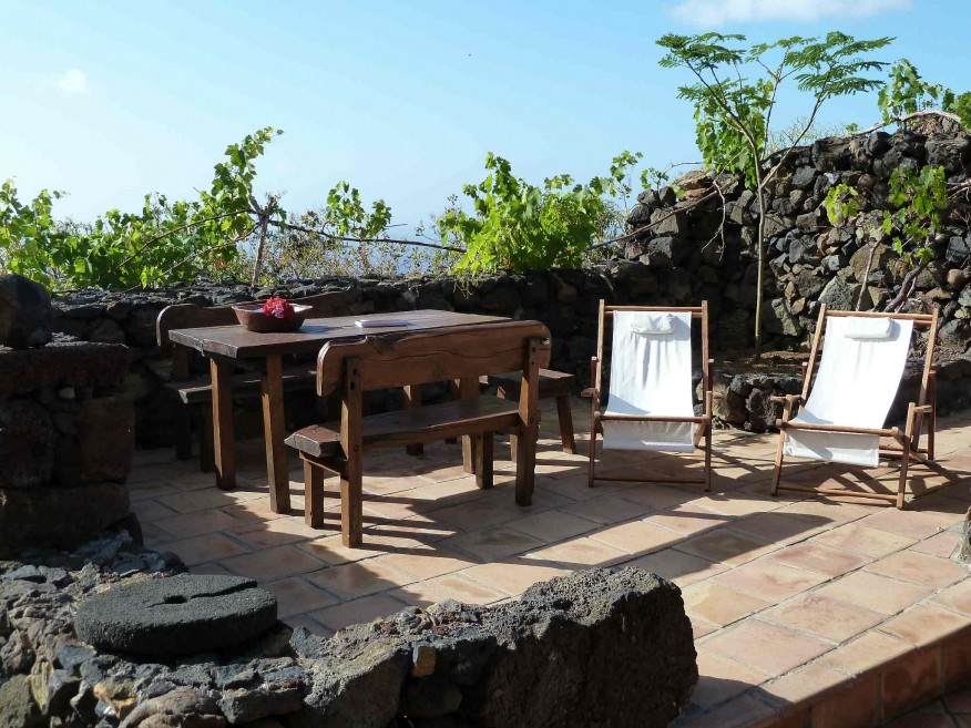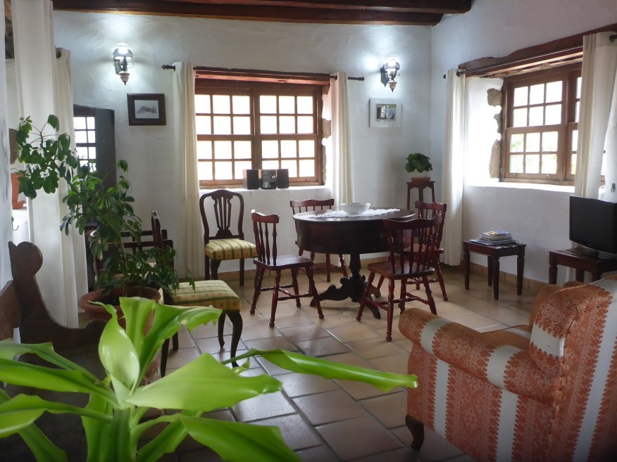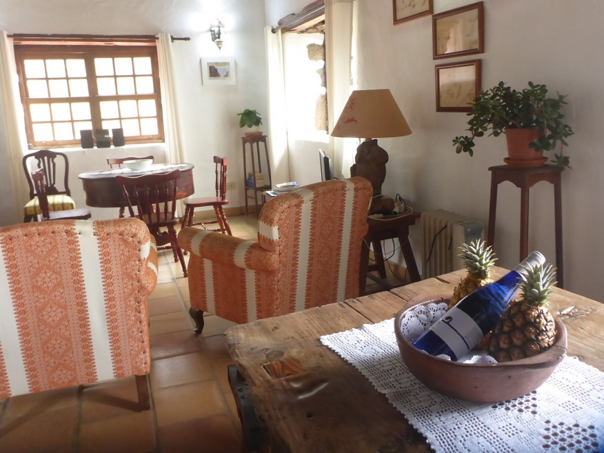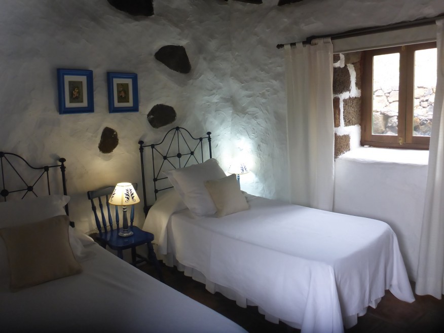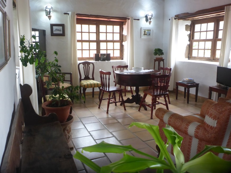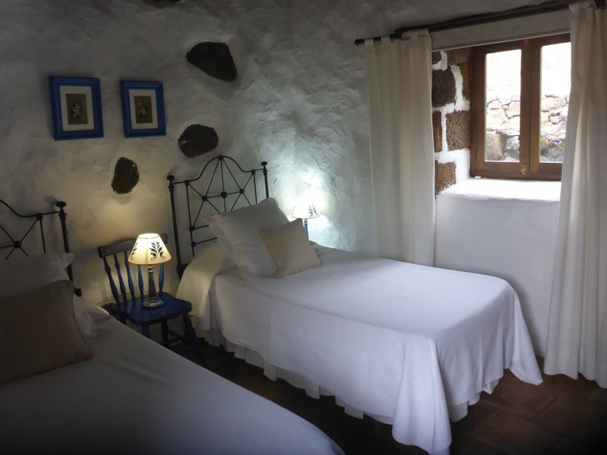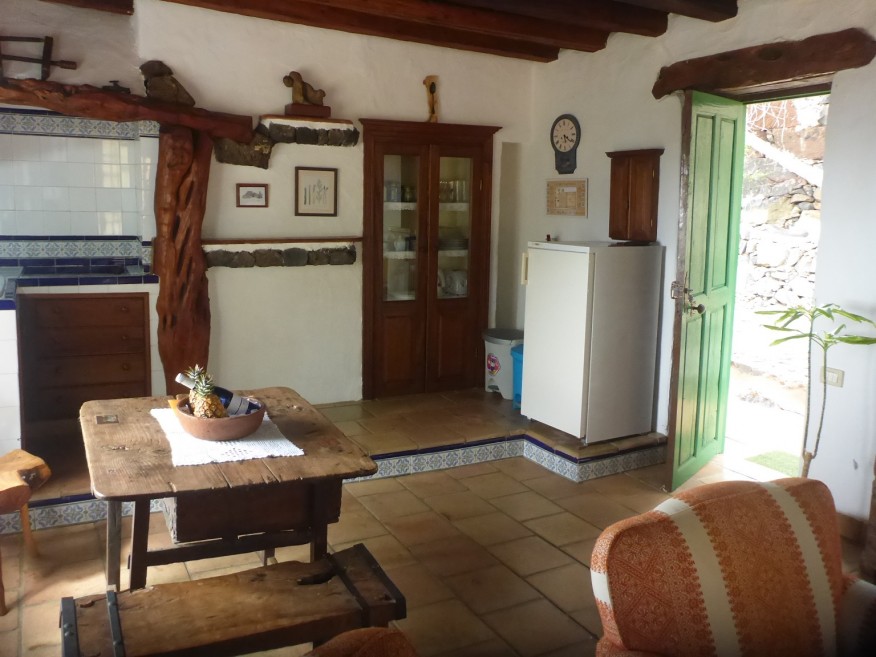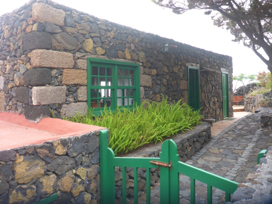 On a hillside in Los Llanillos in the golf valley in the northwest of the island. Shopping, bars and restaurants are only 5-10 minutes away by car. On foot you can reach the small village bar, which offers hamburgers, hot dogs and fresh bread. The private holiday home with approx. 80 sqm. in total for 2 - 4 persons consists of 2 tastefully furnished cottages. In the main house there is a nice kitchen with wooden ceiling, antique furniture, radio, TV, radiator and bathroom/WC. In the 2nd cottage next door you enter the two bedrooms (1 double bed, 1x separate beds) through separate entrances. From the terrace you have a fantastic sea view. By car you can reach the rustic bathing place Charco Azul in 10 minutes. The beautiful seawater swimming pools of La Maceta and Playa Verodal are only 15 minutes away. Other excursion destinations are the "twisted trees", the Charco Manso and the pine forest. Especially nice for children is the bathing area of La Caleta on the east coast. Not to missed is the sunny fishermens port of La Restinga and the bay of Tacoron.