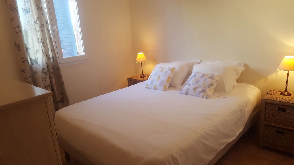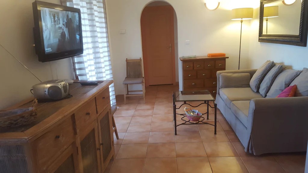 Surrounded by a blooming Mediterranean garden, the apartment is calm, sunny, and offers a scenic setting for relaxing or exploring the region. Both the living room and bedroom are equipped with reversible air conditioning and flat-screen TVs for your comfort.