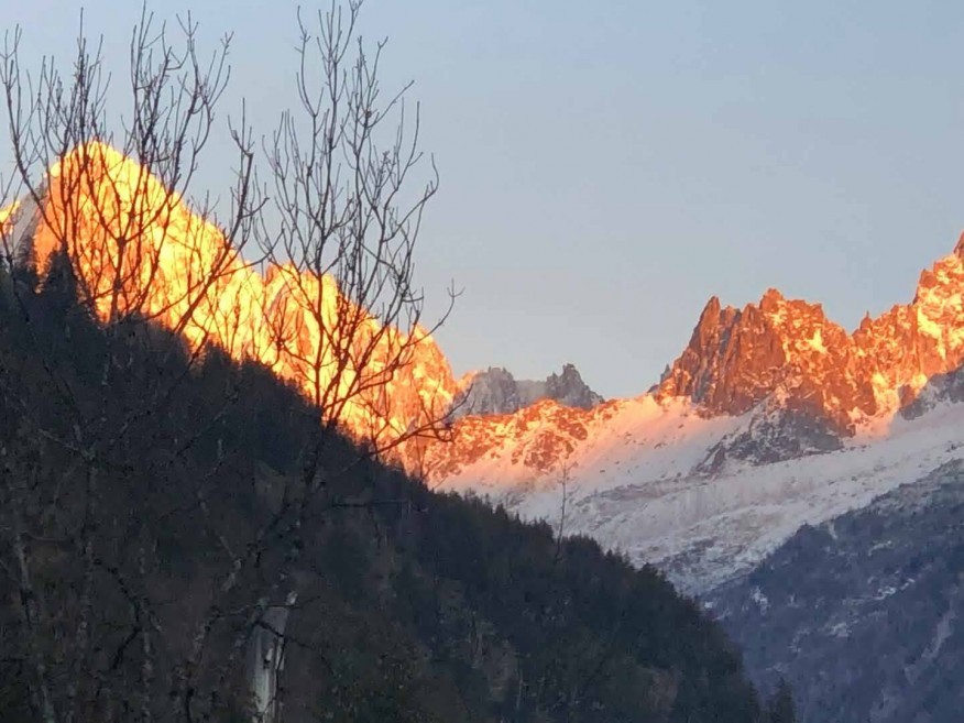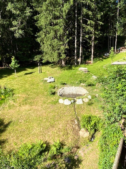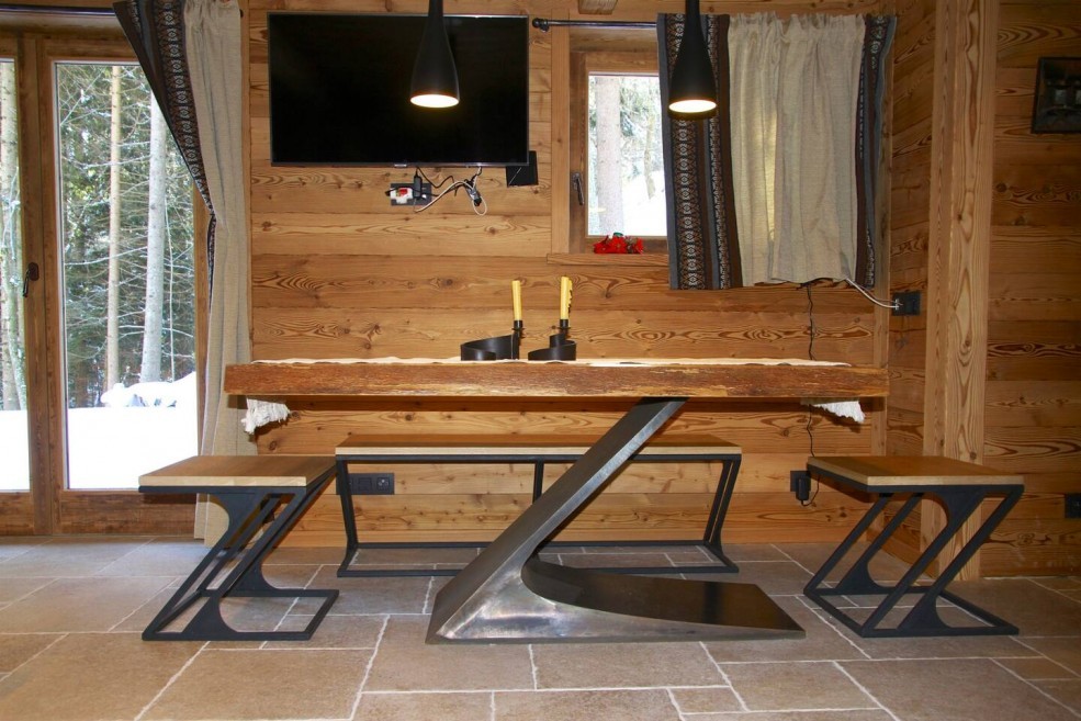 Step outside to the large terrace, perfect for soaking in the panoramic views of Mont Blanc and the tranquil river below.