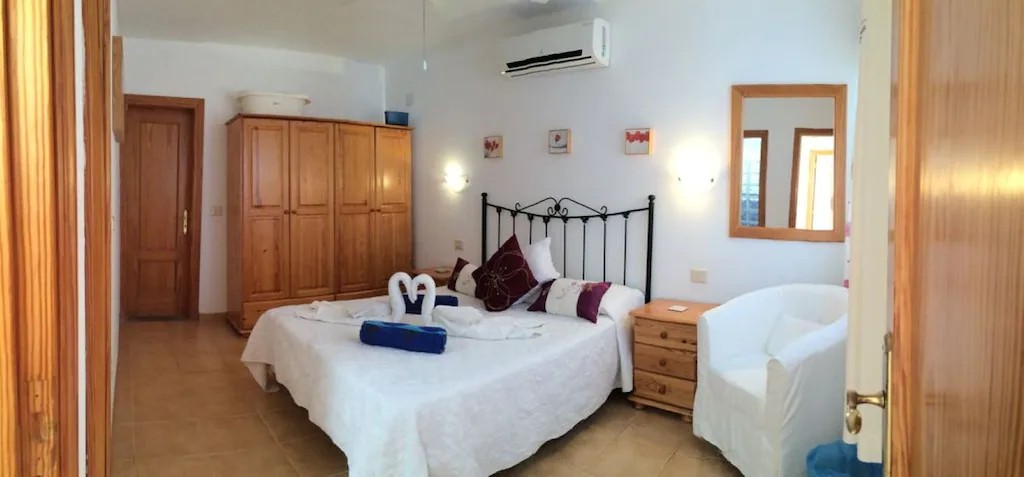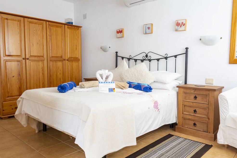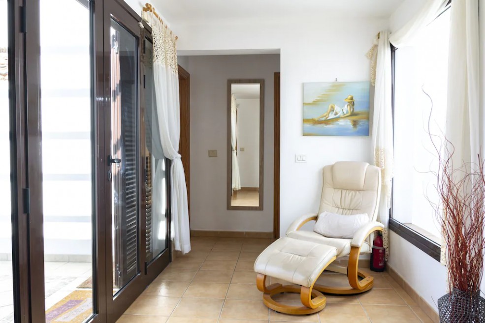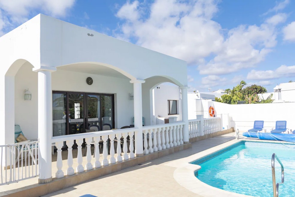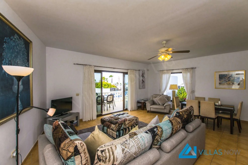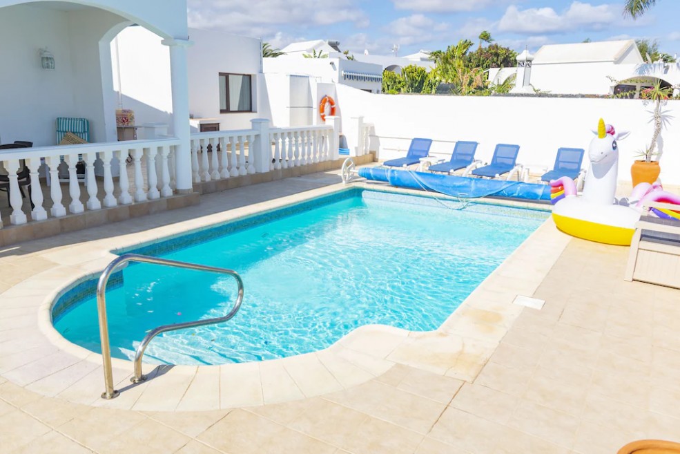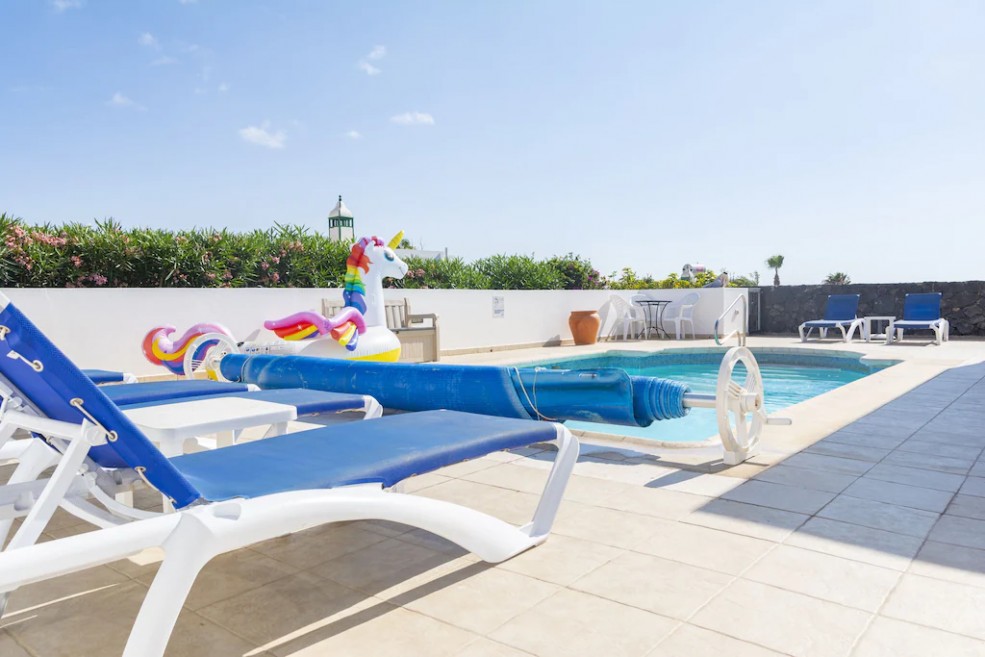 Villa Teneguia is just 30 minutes from Arrecife Airport. With 3 airconditioned bedrooms and two “walk in” shower rooms all on one level making easy access. Located in a prime location within a quiet cul-de-sac in the lovely area known as Montaña Roja, approximately 10 minutes from the Playa Flamingo beach, with excellent restaurants and supermarkets. The area is very family friendly with the water park close by.