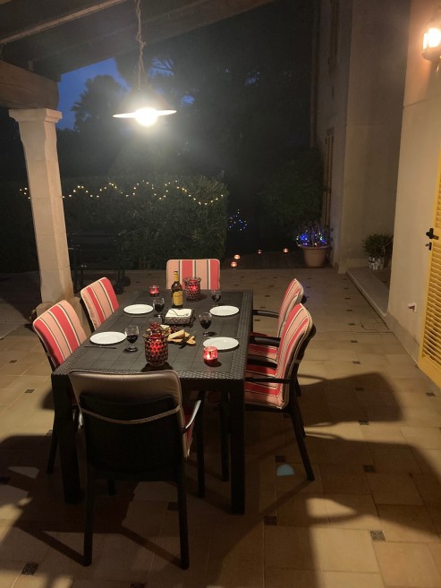Open plan bright, spacious living area with kitchen, dining area and lounge opening onto the sunny poolside. Separate utility room opening onto rear terrace and garden. Large main terrace with larger than average Private Heated Pool 10x5m (now heated for out of season/low season use) and shaded undercover dining area. Hall with ground floor bedroom, bathroom off (ideal for grandparents) opening onto poolside, plus additional downstairs cloakroom.