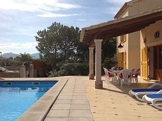 Situated on a quiet street in the select, peaceful area of Llenaire, Puerto Pollensa, this beautiful villa with large private pool is set in pretty gardens with pine, olive and fruit trees. The villa enjoys lovely views of the bay and backdrop of mountains. A two minute walk takes you to the waters edge of the Bay of Pollensa, closest restaurant a 5 minute walk away and convenience store a 7 minute walk. 3 bedroom villa with 2 bathrooms, cloakroom and utility room.
